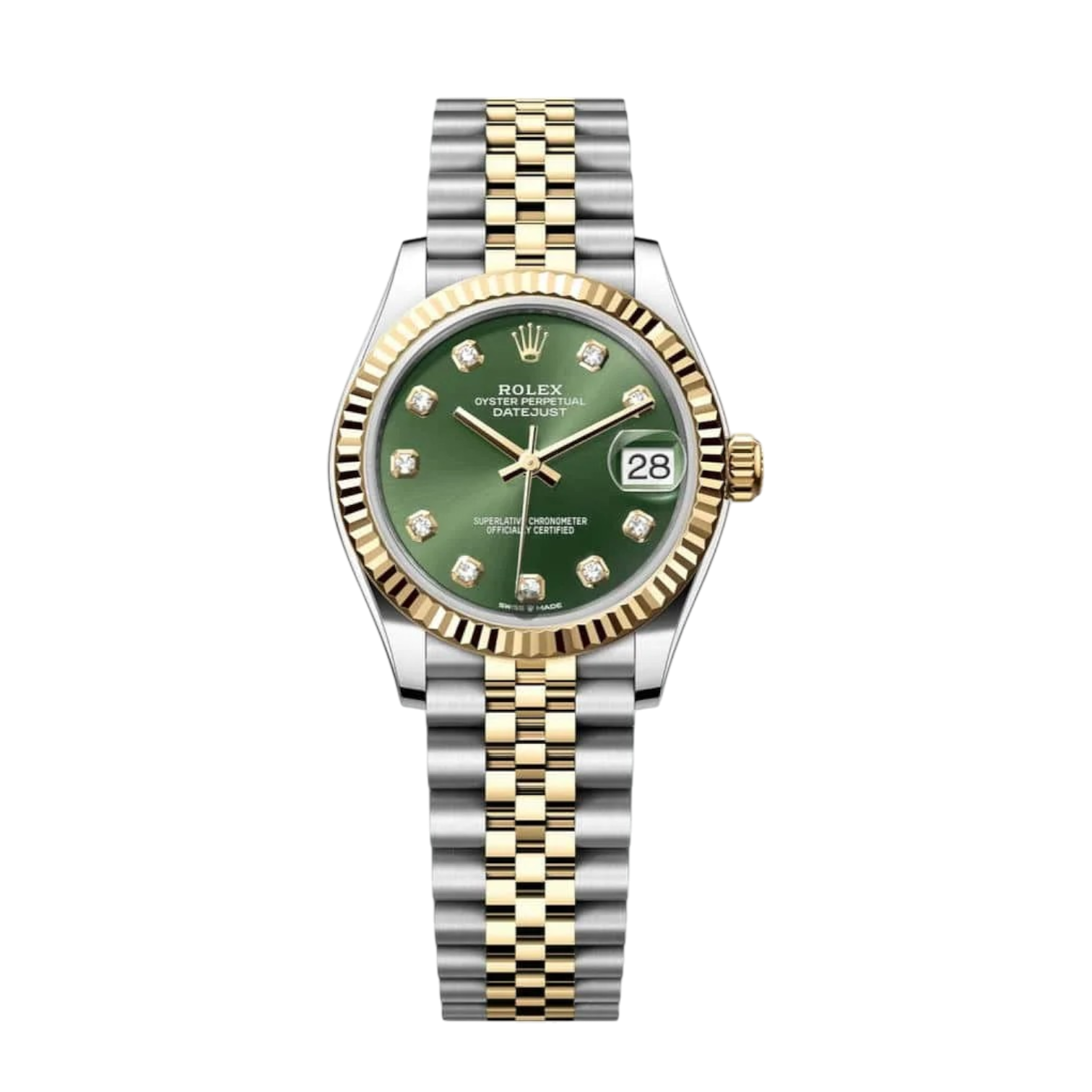 Materials Yellow & White Gold, Self-winding movement, Steel Size 31 mm Dial Green, Zircon